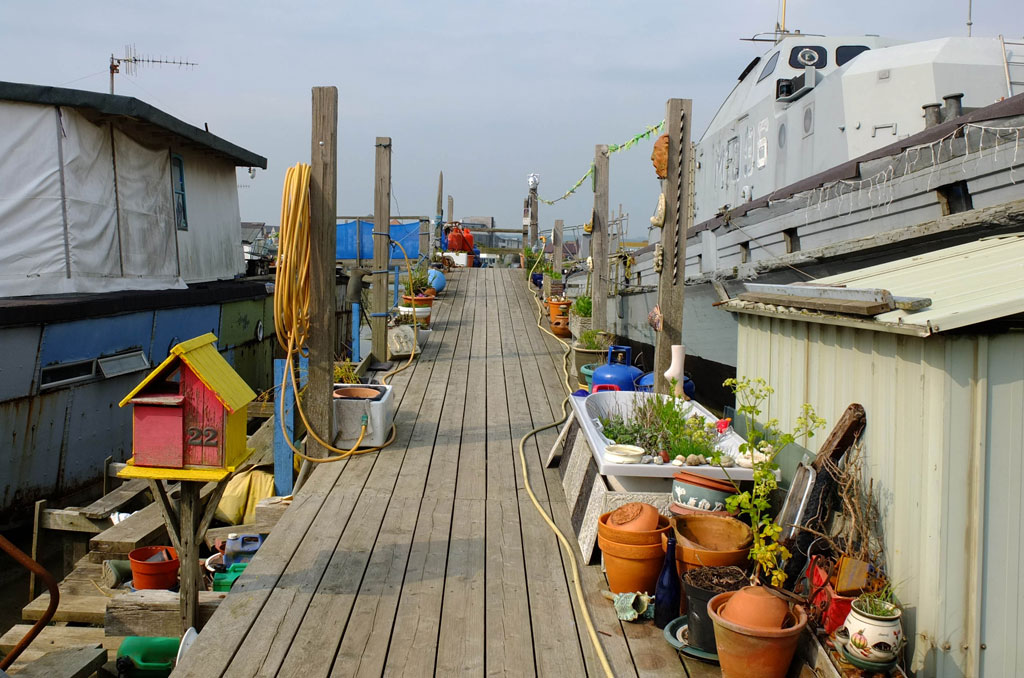 Half of the boats here are ex-military. Before the war the area was known as Bungalow Town where many of the residents were involved in the film industry, settling here because of the wonderful light. Bungalow Town was destroyed by the military in 1939.
