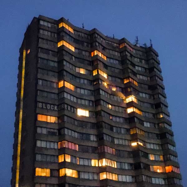 Rob Yates, who lives in Margate’s Arlington House plastered a “Block Brexit” sign across the windows of his high-rise flat is facing eviction if he does not take it down.