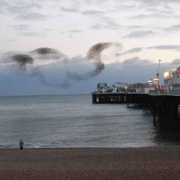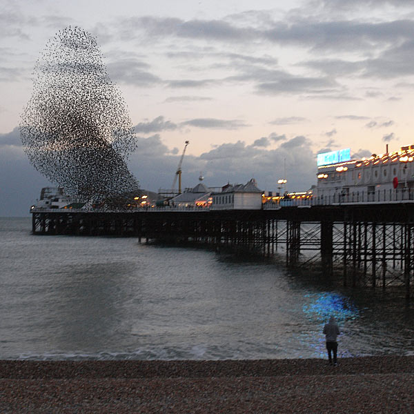 The glorious display of birds at dusk over Brighton Pier before they roost for the night. These days they appear only from time to time, through the winter months and in far smaller numbers than before.
