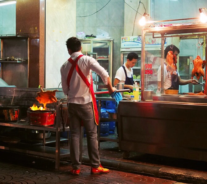Sitting on the street, eating great food in the heat of Bangkok, one of life’s great experiences