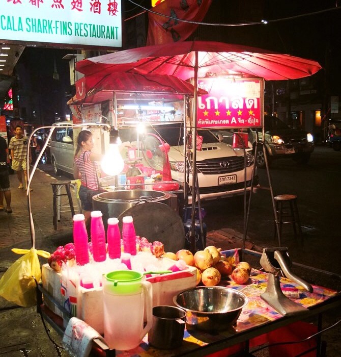As night falls the food stalls take over the streets in Bangkok
