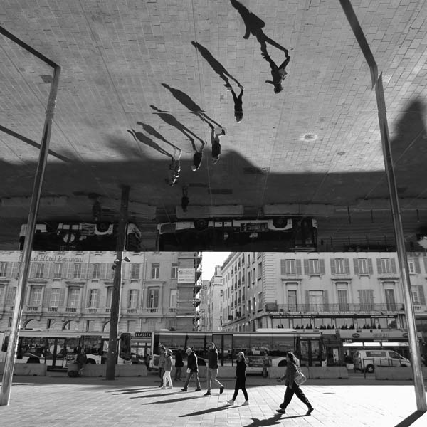Amazing mirrored canopy designed by Norman Foster in the harbour of Marseilles